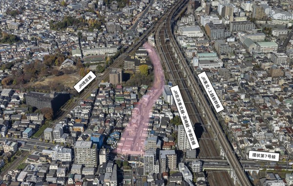 写真中央が補助83号線、十条III期の区間(画像:東京都)。