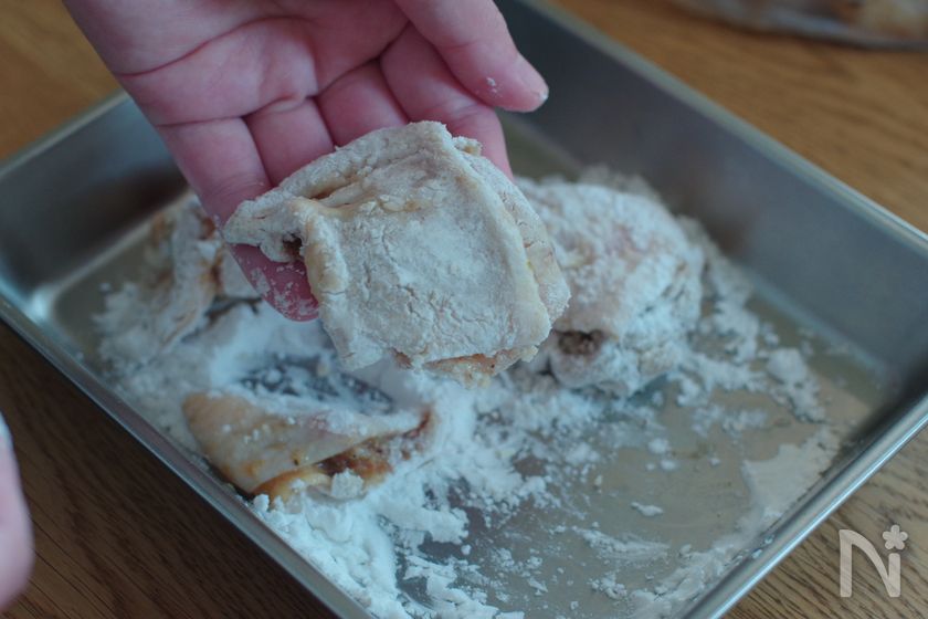 (2) 片栗粉を薄くまぶす。