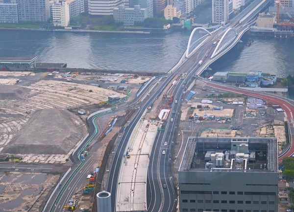 今回の開通で、中央区晴海の月島警察署前交差点から、港区の虎ノ門二丁目交差点まで、高架橋とトンネルにより信号なしで移動が可能に。都心部の一般道では有数の長さを持つ立体交差区間になります。