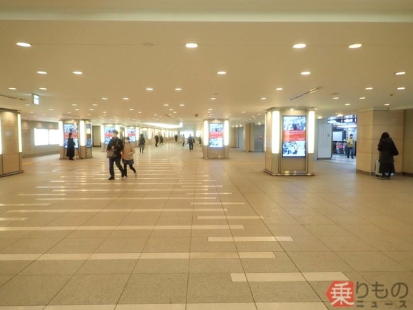 東京駅周辺の広大な地下街は、日比谷公園まで達する。画像は左が北(蜂谷あす美撮影)。