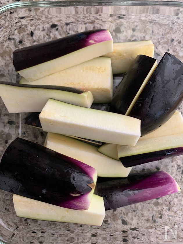 茄子のレンジ加熱は様子を見ながら加熱してください。