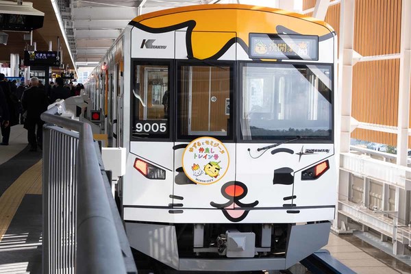また、箕面萱野駅では約20分間の見学時間が取られ、参加者は駅の様子やホームからの風景のほか、箕面市の公認キャラクター「滝ノ道ゆずる」と「モミジーヌ」があしらわれた記念列車やヘッドマーク、行先表示などを撮影するなど、思い思いに楽しんでいました。