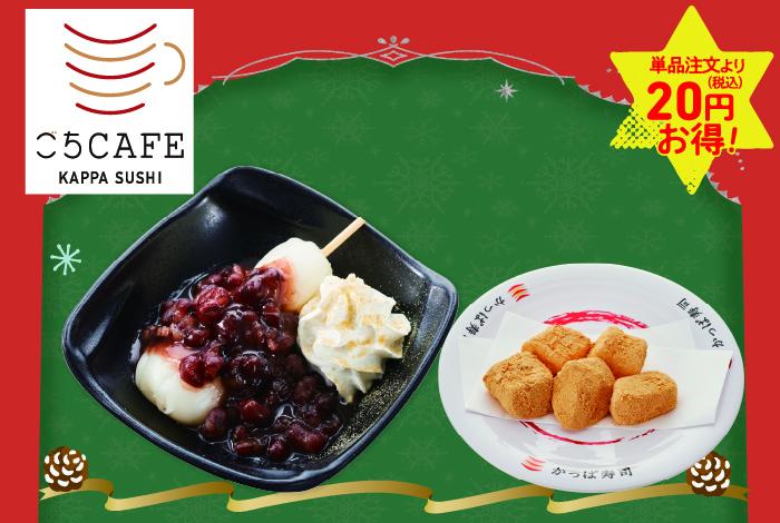 北海道産あずきの甘さともちもち団子が調和した「北海道産あずきのふわもちクリームぜんざい」に、なめらかな口当たりの「京わらび餅」を添えたデザートセットです。