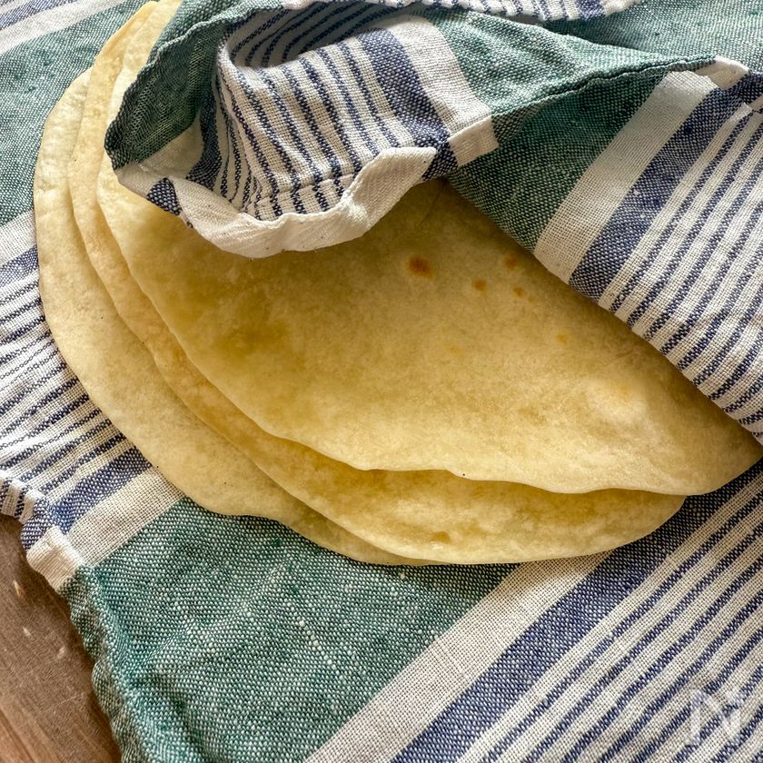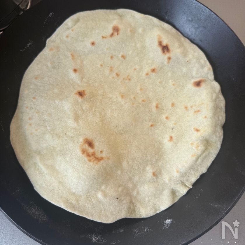 ・生地を伸ばす際は、少しずつ角度を変えたり裏返したりしながら伸ばすと円形に近づけますが、きれいいな円でなくても大丈夫です。薄いので、少し指をひっかけたりするだけで穴が開きやすいのでご注意ください。