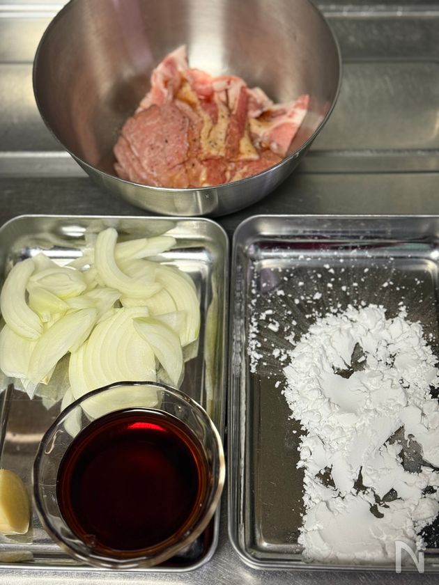 ・肉に片栗粉をつけることでロースでも柔らかくタレもよく絡みます。