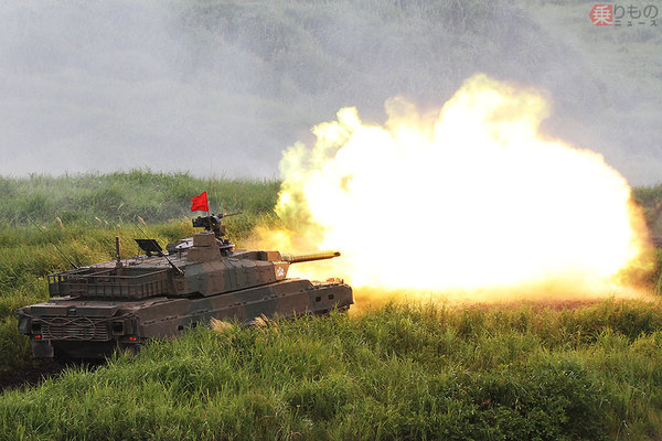 10式戦車の実弾射撃。2020年の「総火演」は規模縮小のうえ、部隊を限定して実施される(2019年8月柘植優介撮影)。