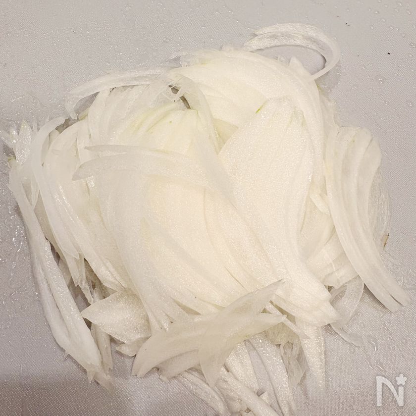 新玉ねぎは辛みが少ないので水にさらさなくても大丈夫です👍🏻