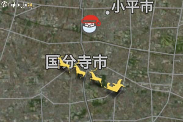 世界で飛んでいる多くの航空機をほぼリアルタイムで追えるサイト「フライトレーダー24」上で、クリスマスの時期に出現した「サンタの機影」。この機影が、2022年12月24日の21時ごろ、日本上空を通過しています。