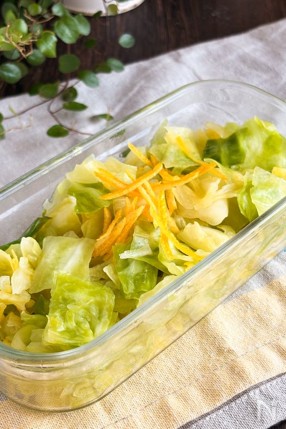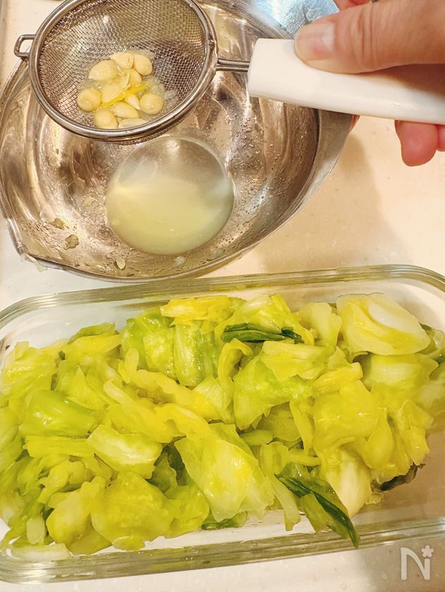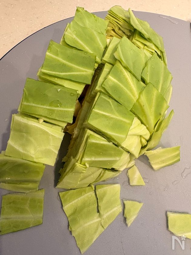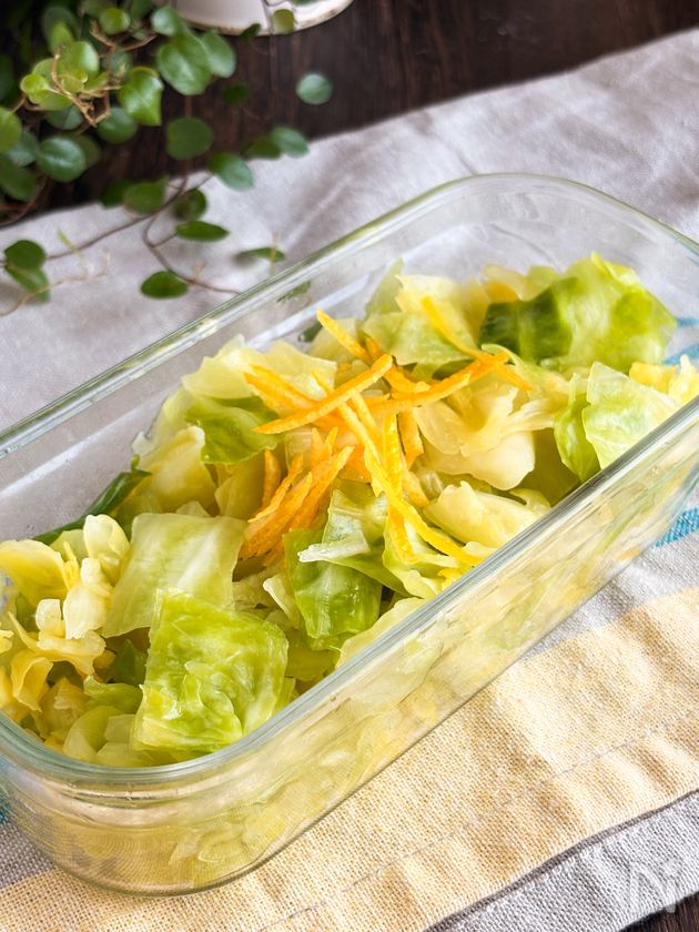 キャベツから出てきた水分はしっかり搾ってください。搾ることによりパリパリ食感が楽しめます😊