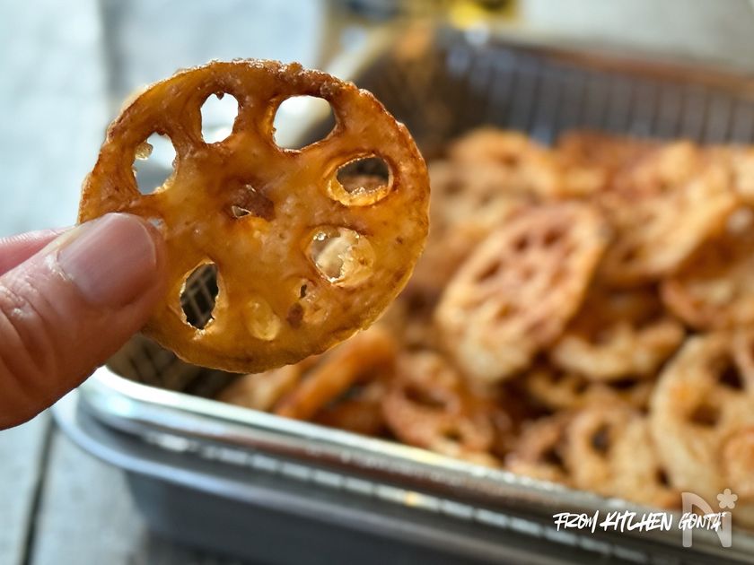 ✔︎コロモをつけたれんこんを揚げる際、重ならないように並べて入れ、加熱。その後、箸でほぐしてください。