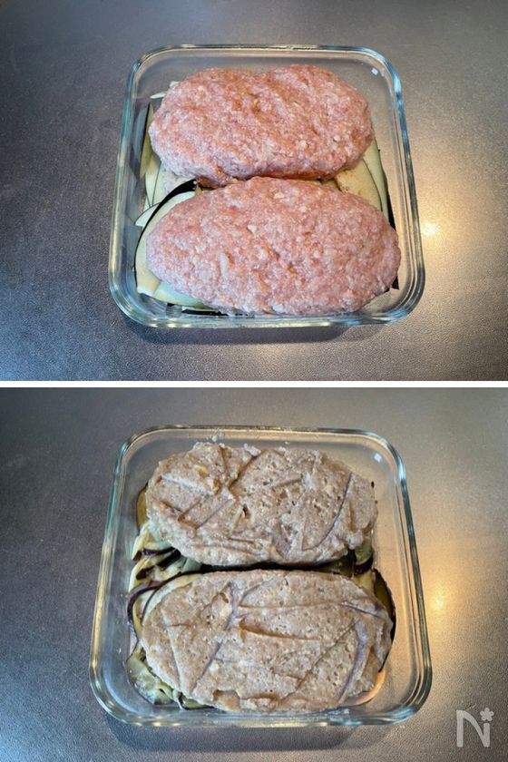 ②なすはハンバーグの下に敷く→ハンバーグの肉汁がなすに染みこみ、さらに美味しく頂けます♡