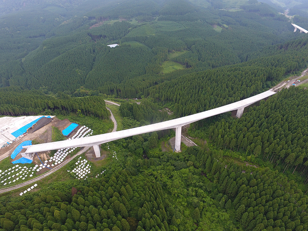 清武南IC~日南北郷IC間の赤木橋、建設中の様子(画像:宮崎河川国道事務所)。