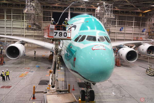 ANA(全日空)が2022年7月1日から、約2年4か月ぶりに定期便へ定常的に投入する総2階建て客室をもつ旅客機、エアバスA380「フライングホヌ」。A380は「世界最大の旅客機」としても知られています。そのため、飛行機の外装を洗浄する作業も、他機種とは大きく異なるそうです。どのような差があるのでしょうか。担当者に聞きました。
