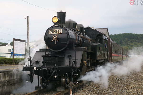 C12形蒸気機関車がけん引する真岡鐵道の「SLもおか」(画像:写真AC)。