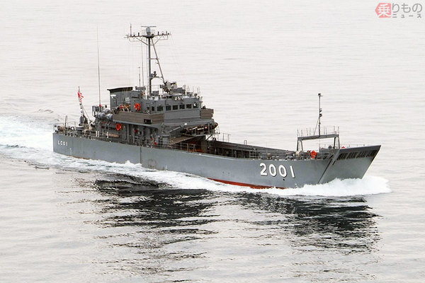 海上自衛隊が保有する輸送挺1号。佐世保地方隊に配備されており、基準排水量420トンで、物資など約25トンを運搬することが可能(画像:海上自衛隊)。