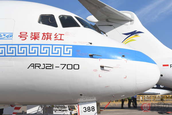 2024年2月に開催されたシンガポール航空ショーで広く国際デビューした中国製リージョナル機「ARJ21」。報道によると同国はあくまで独自開発としているものの、世界的には「アメリカのヒット機の設計を流用して設計された」とみなされています。これらの2機は、どれほど似ているのでしょうか。