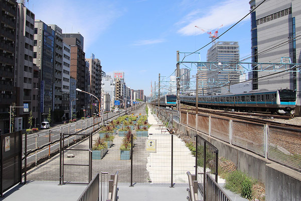 予算以外に、旧横浜~桜木町間の整備が進まない大きな要因が、その立地条件です。京浜東北線と国道16号のわずかな隙間に位置し、旧東横線の高架下の一部が国道の歩道になっているほど、スペースがないのです。京浜東北線や国道に影響を与えることなく工事を進めるには、綿密な協議が必要だといいます。