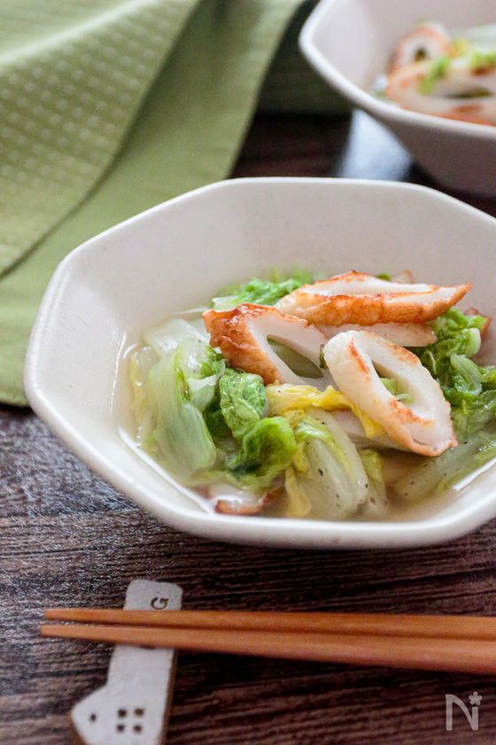 (下準備) 白菜はざく切り、ちくわは5mm幅の斜め切りにする。
