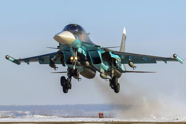 滑空爆弾を搭載できるSu-34戦闘爆撃機(画像:ロシア国防省)。