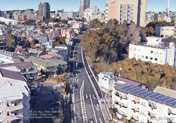 県庁から伸びる都市計画道路「本町星久喜町線」(画像:Google Earth)。
