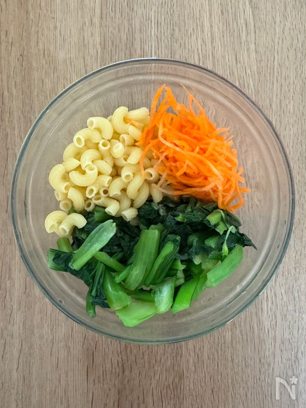 ・人参は、千切りにし塩ひとつまみで塩もみし、しっかり絞る。