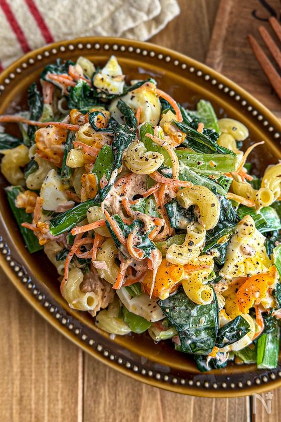 ・マカロニは、表示の時間より、2分長く茹で、冷水で水分をしっかり拭く。
