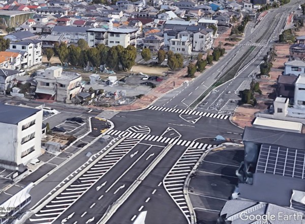 摂津市内で4車線開通している十三高槻線(画像:Google Earth)。